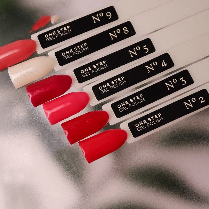 One Step ir 3in1 vienfāzes puspermanentās nagu lakas, kas satur bāzi, krāsu un virskārtu, kas iekļautas vienā formulā. Tāpēc tiem nav nepieciešama papildu pamatnes vai virskārtas uzklāšana, un tie arī nerada dispersijas slāni.