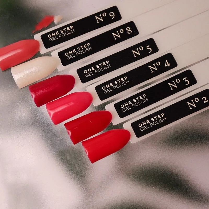 One Step ir 3in1 vienfāzes puspermanentās nagu lakas, kas satur bāzi, krāsu un virskārtu, kas iekļautas vienā formulā. Tāpēc tiem nav nepieciešama papildu pamatnes vai virskārtas uzklāšana, un tie arī nerada dispersijas slāni.